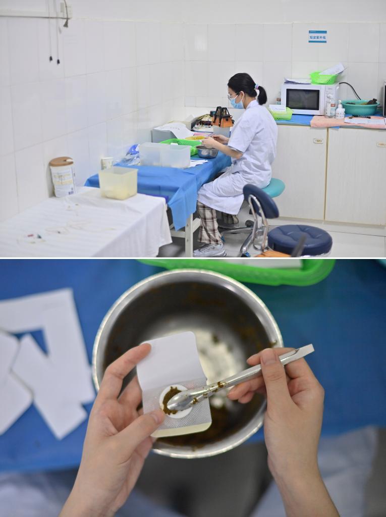 在广西柳州市融安县泗顶镇卫生院,医生蒙汝婷在制作中药膏(4月29日摄)。今年23岁的蒙汝婷,大学毕业后选择到乡镇医院工作。