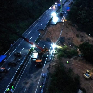 新华社广州5月2日电(记者陆浩、王瑞平)记者从梅州市有关方面获悉,5月1日凌晨2时10分许,梅大高速往福建方向K11+900米附近发生高速公路路面塌方灾害。至5月2日早上5时30分,已发现23辆车陷落,36人死亡,30人受伤(无生命危险)。