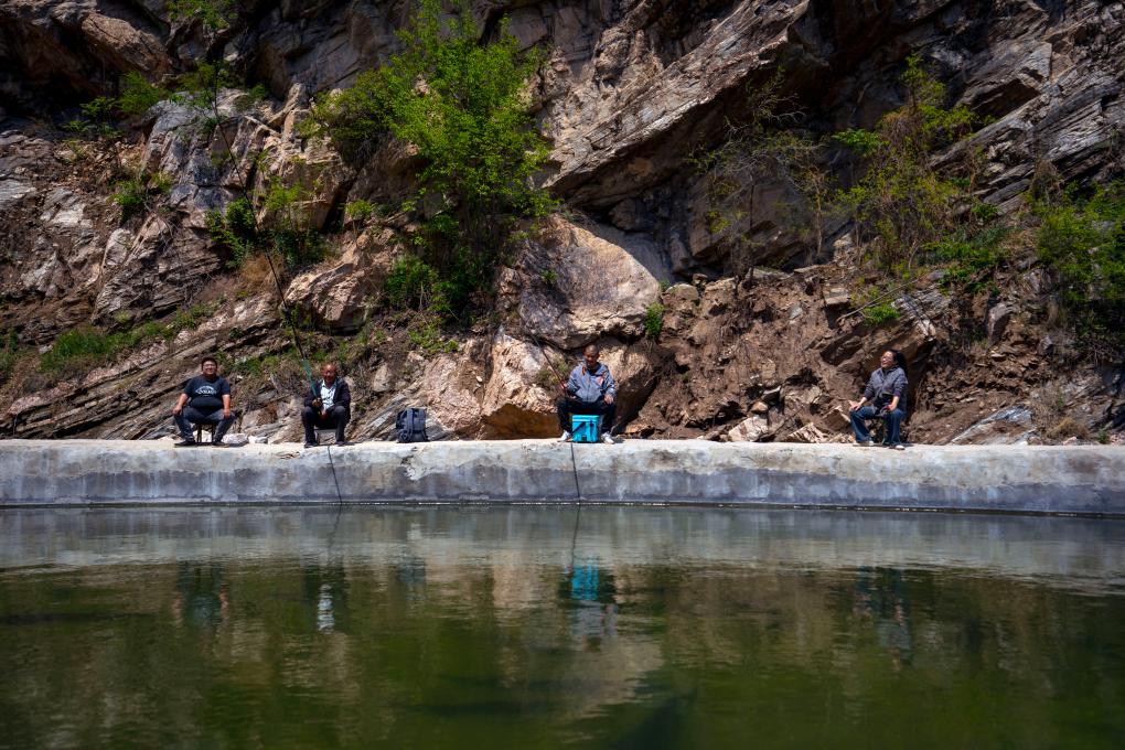 5月3日,游客在河北保定阜平县骆驼湾村垂钓。新华社记者 邹尚伯 摄