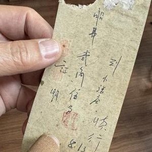 4月26日,杨建新在展示一张1960年前后的手写船票,上面注明“到小张庄船费贰角伍分”。新华社记者 张硕 摄