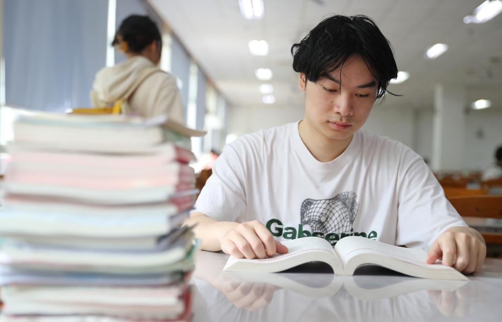 ↑2024年5月8日,湖南省衡阳市,周遥在南华大学图书馆看书学习。CICPHOTO/曹正平 摄