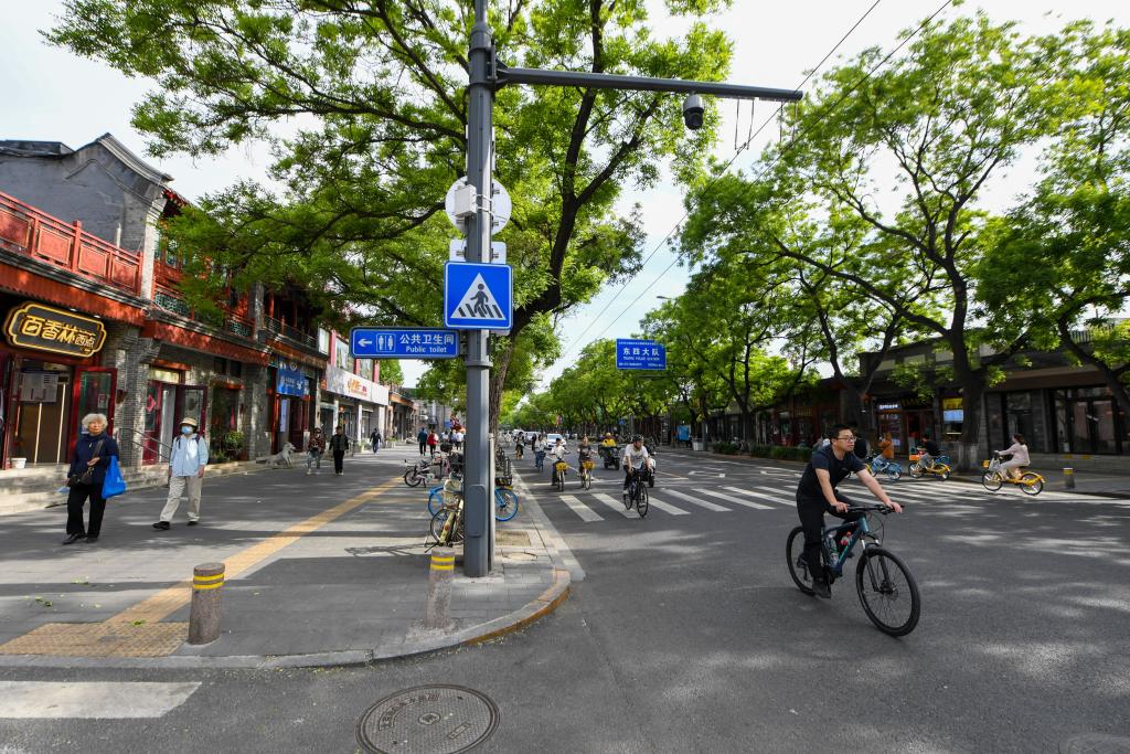 5月1日,市民游客在东四北大街骑行。崇雍大街改造推动“慢行优先”“健步悦骑”,推动“车辆优先”向“行人优先”转变,实现骨干道路功能转型为绿色交通主导,让“健步悦骑”体验更为顺畅。转风貌、提环境、增品质、调业态