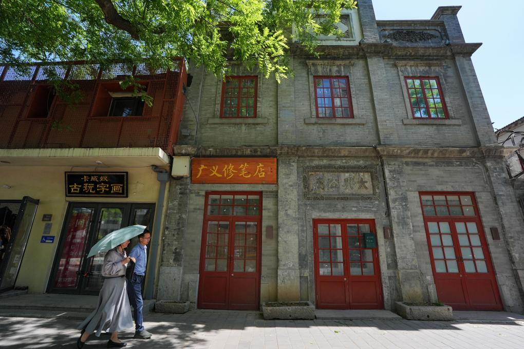 行人经过改造修缮后的东四南大街102号大兴公寓旧址(5月11日摄)。