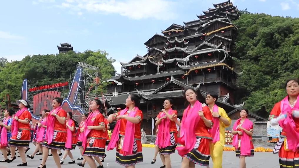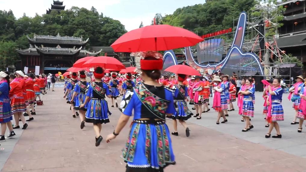 5月15日,第十三届中国乌江苗族踩花山节在重庆市彭水苗族土家族自治县的蚩尤九黎城启幕。启幕现场万人同唱娇阿依、万人共舞“踩花山”,庆祝彭水苗族同胞一年一度的重要节日——踩花山节。