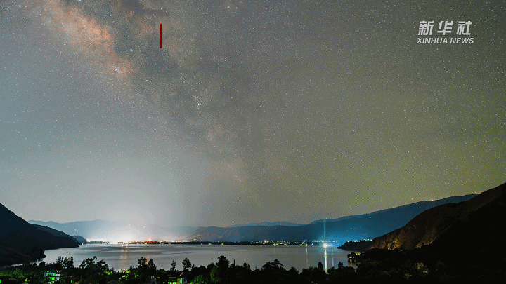 子时(23:00-01:00),风平浪静,茈碧湖上空满天星辰化作一道道星轨。