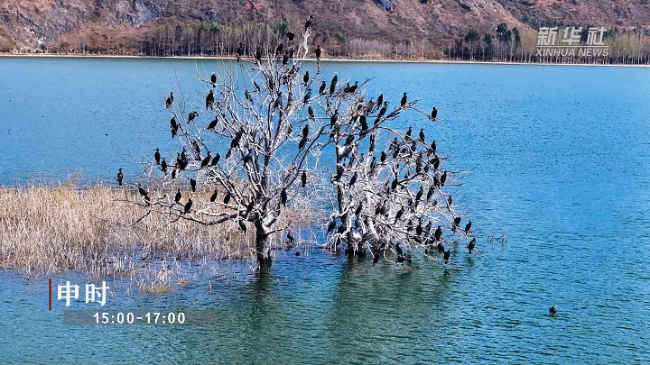 申时(15:00-17:00),碧波荡漾,一树鸬鹚蹁跹欢歌,这是生灵的乐园,诗意的家园。