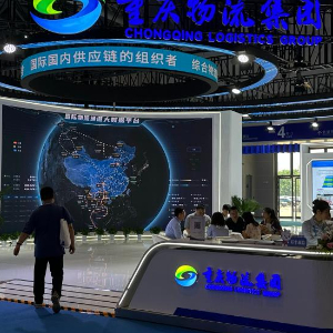 5月23日至26日在第六届中国西部国际投资贸易洽谈会(西洽会)上,重庆物流集团展区内的一张环形电子大屏引人注目,经重庆口岸的各类国际物流通道大数据在这里实时更新、分析汇总。