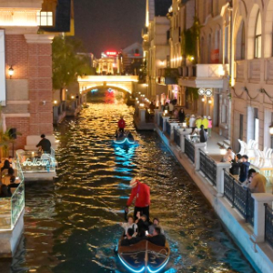 5月16日,游客乘船在大连的东方威尼斯水城游览。新华社记者 石枫 摄