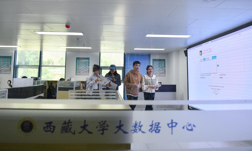 5月30日,尼玛扎西的学生在西藏大学大数据中心结束翻译软件测试。新华社记者 晋美多吉 摄