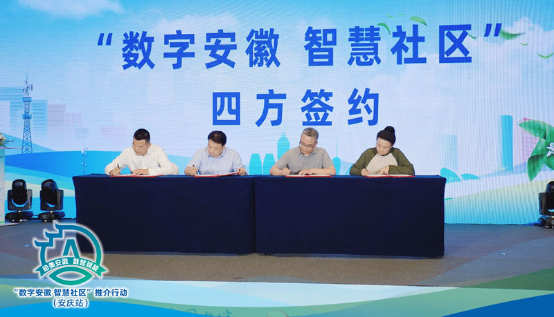 安徽广播电视台、安庆市委网信办、安庆市住建局、中国电信安庆分公司在现场举行了四方签约,为安庆市的智慧社区建设提供支持,希望通过联合行动,推介智慧社区建设整体解决方案。活动现场,中国电信安庆分公司还分别与安庆各区县举行了智慧社区战略合作协议签约仪式,与安庆各区县的社区、物业举行了智慧社区建设合作协议签约仪式。