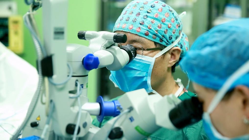 北京同仁医院副院长魏文斌在为患者进行手术。新华社发