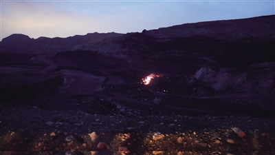 近日,记者来到位于贺兰山腹地的汝箕沟矿区中槽、红梁西火区,站在数百米外,刺鼻的气味扑面而来,大约数十平方米的区域内,红色火焰在夜间清晰可见。第二天一早,记者在中槽火区附近看到,厚几十米、长达几千米的煤层自燃后呈灰白色,煤层烧空后还引发了山体滑坡。