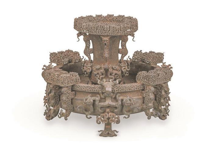 1978年,曾侯乙尊盘出土于湖北随州市擂鼓墩曾侯乙墓,被列为首批禁止出国展览的珍贵文物。该器物由尊和盘组成,上面是尊,下面是盘,器物造型异常精美,结构则极为复杂。有考古学者如是描述曾侯乙尊盘:“玲珑剔透的镂空附饰犹如行云流水、龙蛇蠕动。其造型艺术和铸造技术都达到了炉火纯青的程度。在所有传世和出土的商周青铜器精品中,是一件令人叹为观止的艺术精品。”