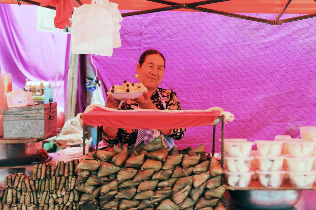 在和田夜市,顾客购买酸奶粽子,打包带走。