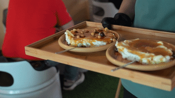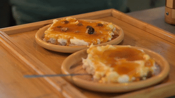 在北京一家餐厅,工作人员为顾客送上酸奶粽子。