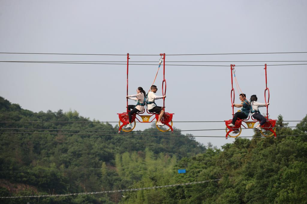 ↑2024年6月8日,游客在浙江省湖州市吴兴区埭溪镇驾云山生态森林度假景区游玩。CICPHOTO/何伟卫 摄