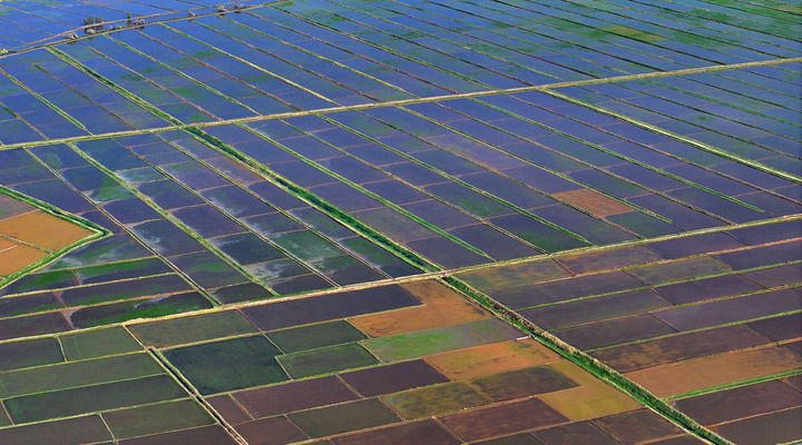 春天的宁夏平原引黄灌区,一片生机勃勃、绿意盎然。从银川市出发,驱车沿黄河一路行进,两岸水清岸绿、风景宜人。以黄河河道为轴,河中波光粼粼的广阔水面好似银镜倒映着蓝天白云,河道两侧大小湖泊棋布,空中鸥鸟翔鸣,岸边林草丰美,步道游人漫步,铺陈开一幅人与自然和谐共处的美丽生态画卷。当车辆行驶过引黄灌溉的大片农田,目之所及是翠绿的秧苗迎风轻摆,如果从高空俯瞰,一块块稻田在不同的光线角度下,有些青绿有些嫩黄,好似一块大自然的调色盘。