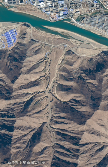 卫星视角下拉萨市东嘎社区二组(西嘎山)植被变化图。