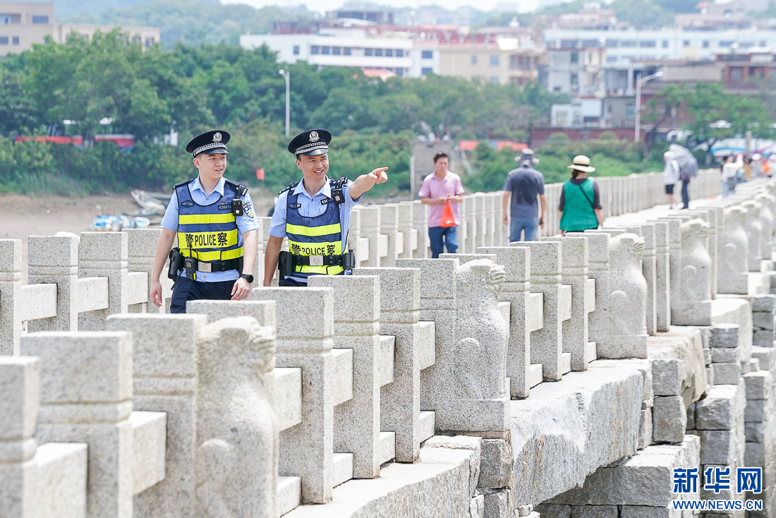 6月17日,民警在洛阳桥上巡查。新华网 肖和勇 摄