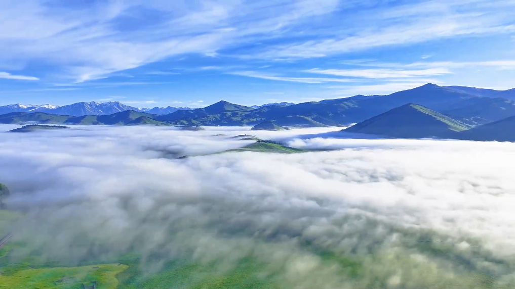 炎炎夏日,新疆阿勒泰市托勒海特夏牧场迎来一年中最美时节。晨雾缠绕着山峦、森林,时而汇聚成海,波澜壮阔;时而散开成缕,轻柔缠绵,与绿林、草地、山峦,雪山交织成一幅动人的画卷,勾勒出无尽诗意。
