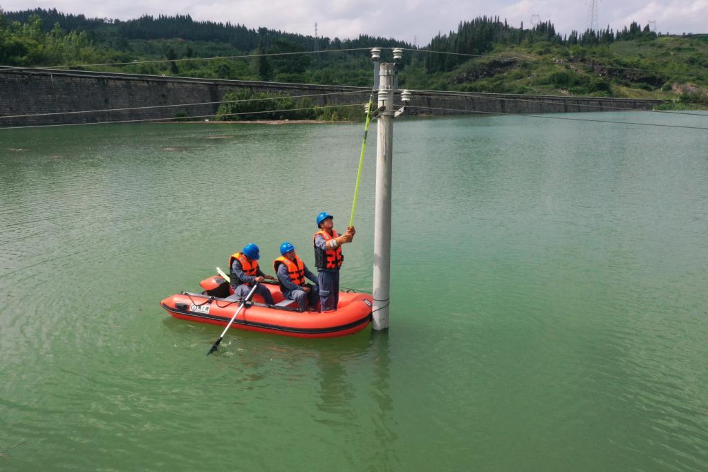 19日下午3时许,兴仁市巴铃镇水淹坪村的一些低洼地区出现积水,影响电网正常运转。南方电网兴仁供电局配电综合班组长彭龙义和几名队员乘着皮划艇前往被水淹没的区域,对受损的配电网设备进行特巡特维。“我们借助手机App数字化监测、无人机特巡等技术手段,确定了抢修方案,在保证安全的前提下有序开展受损线路修复。”彭龙义介绍,经过数小时抢修,水淹坪村居民陆续恢复正常用电。