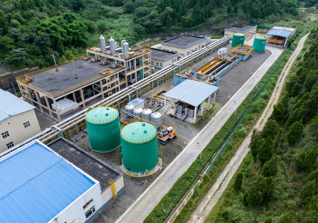 6月25日在重庆市涪陵区白涛镇油坊村拍摄的涪陵页岩气田白涛产出水处理站(无人机照片)。