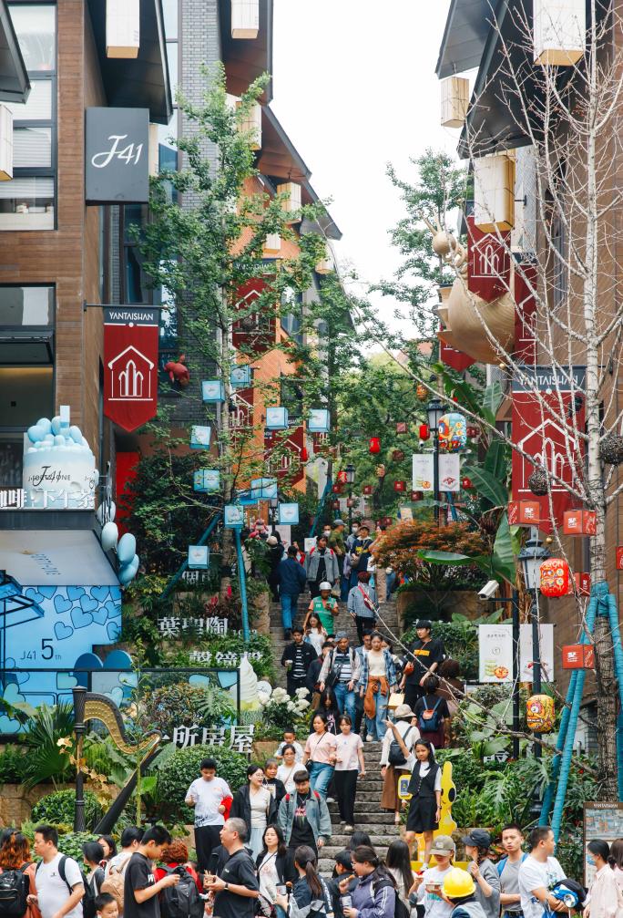 “在业态规划时,我们以盐仓遗址为中心,引入茶室、水吧、餐厅,希望能把这里打造成消费者愿意停留的小聚落。”烟台山商业漫步街区市场推广合伙人周婧雯说,“有的主理人主动开放店铺空间,利用高差将绿化池改造成茶座,我们再把街头艺人演出、文化展览等活动导入,这个半围合的小院现在已经变成别致一景。”