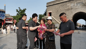 日前,在位于河北秦皇岛市的山海关古城,在山海关区人民法院长城文化保护人民法庭庭长申妍的带领下,法庭干警们对游客和商户开展普法宣传。宣讲《长城保护条例》并通过违法案例以案释法,是他们长期坚持的一项重要工作。