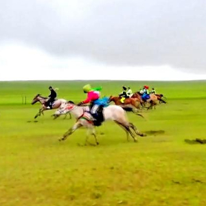 6月的锡林郭勒草原如风景画。近日,内蒙古锡林郭勒盟西乌珠穆沁旗举办赛马活动,吸引了众多牧民报名参加。