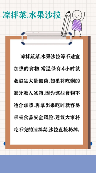 隔夜食物并不仅仅是当天吃剩下、放到第二天的食物。放置时间超过8~10小时的食物都属于隔夜食物。