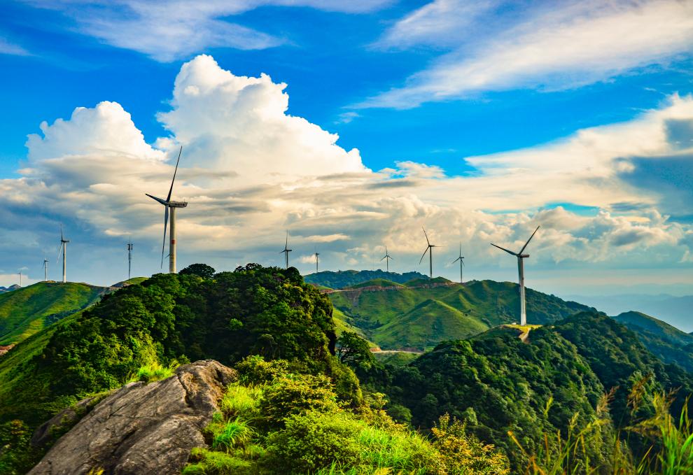 这是6月26日拍摄的广西龙胜各族自治县南山牧场内的风力发电机组。