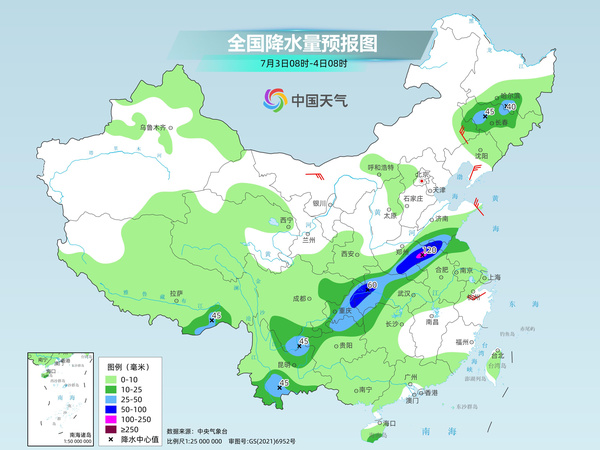昨天,南方主雨带依然呈现西南至东北走向,其中江苏沿淮地区、安徽中部和北部、江西北部、湖北中东部、湖南中北部、贵州东部、广西中北部及云南西部等地部分地区出现暴雨或大暴雨,江苏淮安、安徽合肥、湖北咸宁、湖南岳阳等局地特大暴雨。