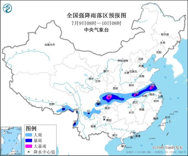 中央气象台7月9日06时发布暴雨黄色预警: