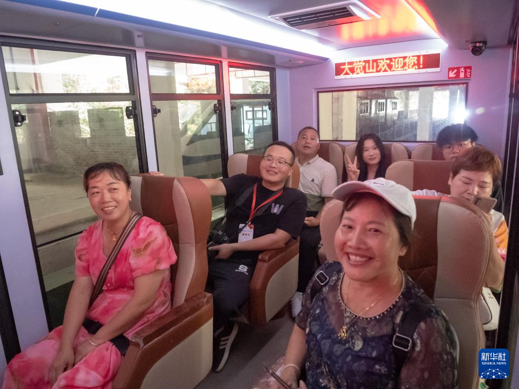 7月11日,在江西大觉山景区,乘客乘坐“悬崖动车”。新华社记者 郭杰文 摄
