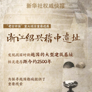 国家文物局7月12日举行“考古中国”重大项目重要进展工作会,通报了浙江省绍兴市稽中遗址等4项考古重要成果。