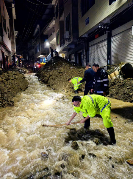 03:00,出现强降雨,应急值班人员立即开展巡逻。