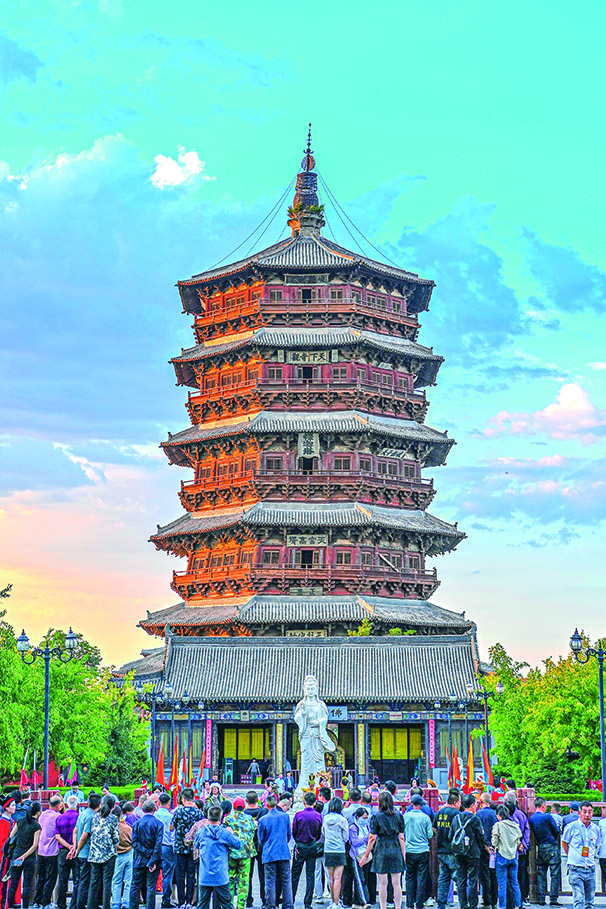 时光流转,这座世界最高木塔一直是中国人刻在骨子里的文化自信。它高67.31米,50余种斗拱装点其中,历经千年风雨、地震、战争而不倒,用榫卯结构创造了中国建筑史上的奇迹。应县木塔旅游公司董事长车建国说,“来看它的人越来越多,去年90万人次,今年上半年就已达到80多万。”