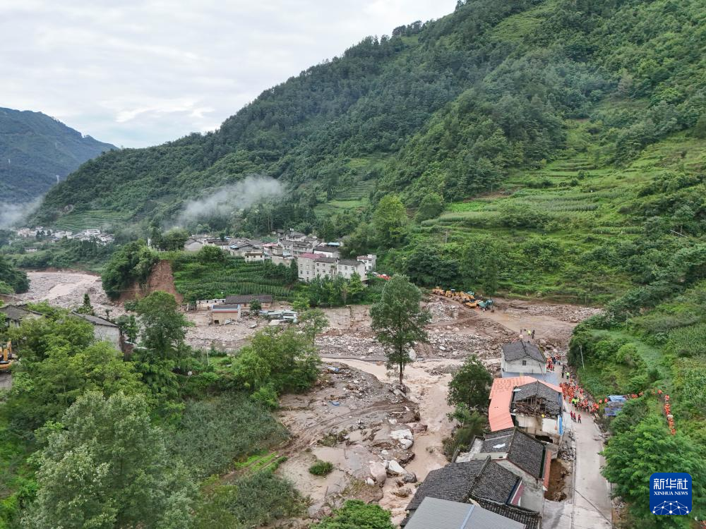 这是7月21日拍摄的四川省雅安市汉源县马烈乡新华村搜救现场(无人机照片)。新华社记者 王曦 摄