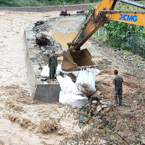 陇南市武都区月照乡干部群众正在积极抢修加固一处堤坝。(陇南市武都区融媒体中心供图)