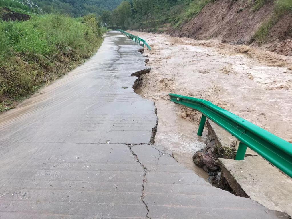 陇南市武都区黄坪镇一处公路遭水毁。(陇南市武都区融媒体中心供图)