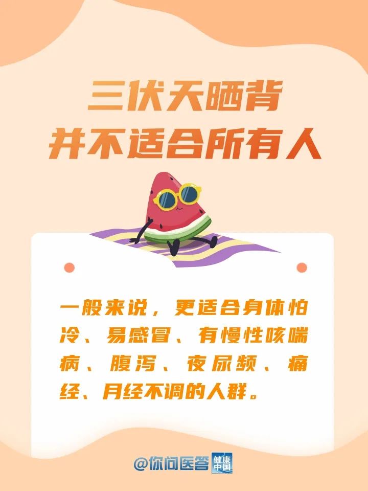 今年三伏天高温加暴雨,湿热交加,散热不利,晒背时切记防中暑。
