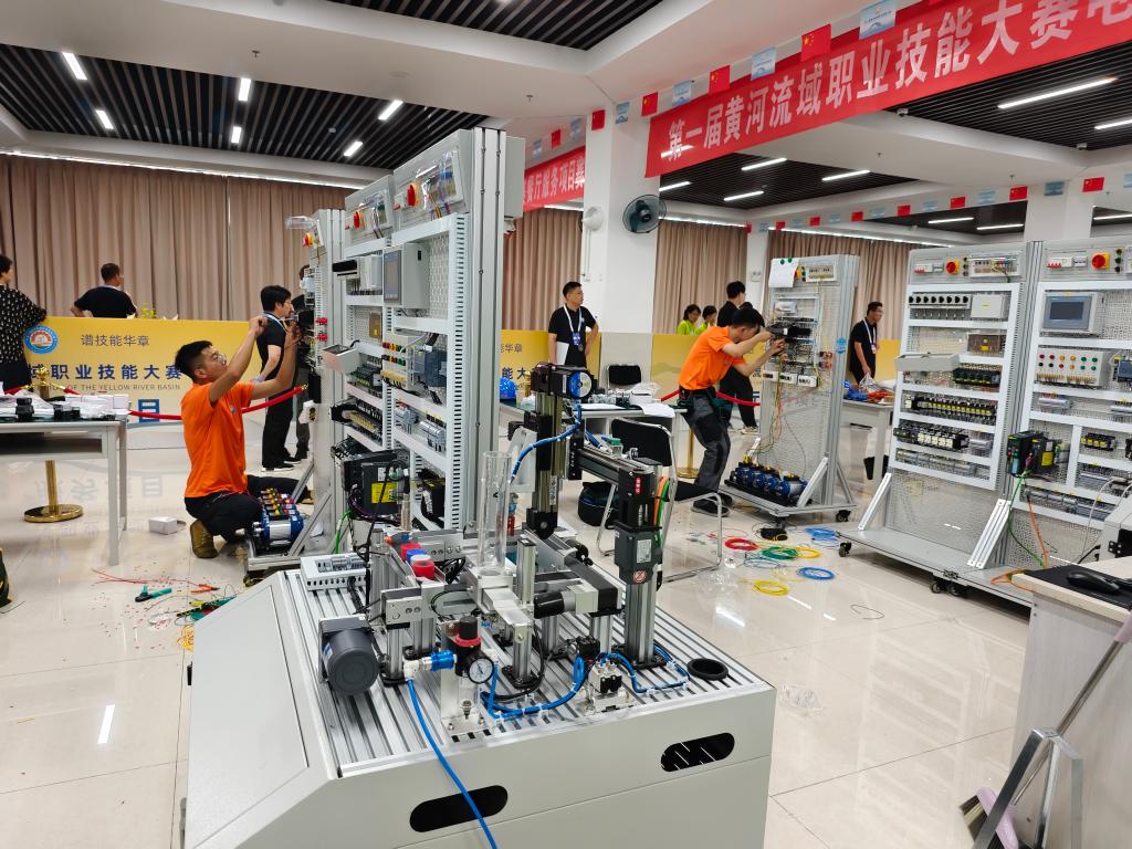 首届黄河流域职业技能大赛电工项目比赛现场。新华社记者邵鲁文 摄