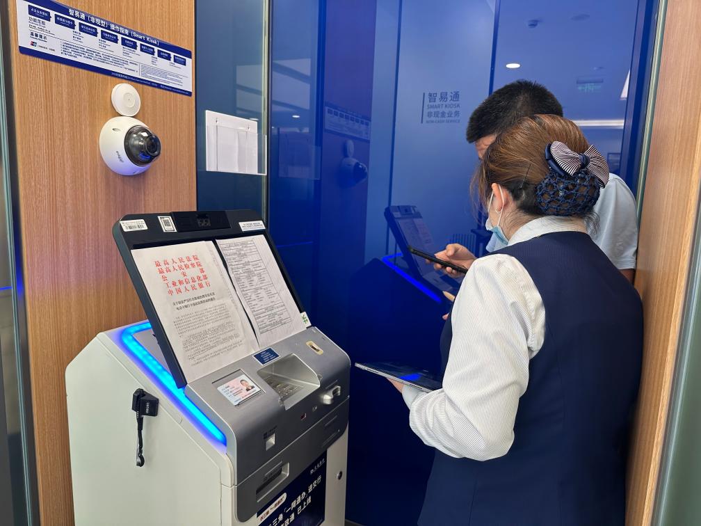 市民在交通银行上海市北工业区支行“智慧政务服务”终端办事。新华社记者 胡洁菲 摄