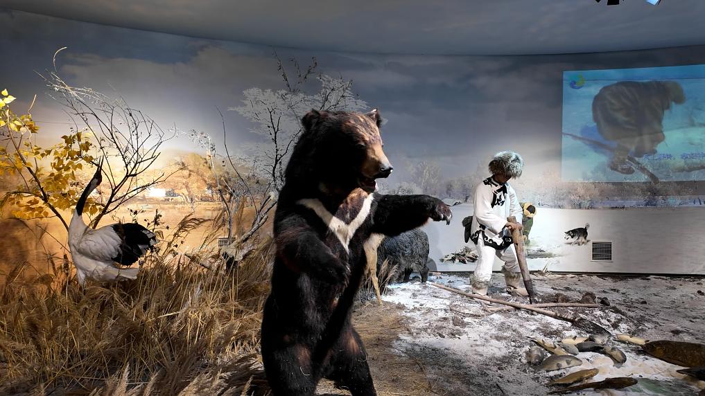 同江市赫哲族博物馆内复原的赫哲族先民生活场景。新华社记者 吴悠 摄