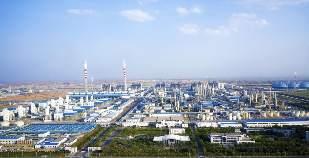 位于宁夏宁东能源化工基地、在戈壁荒滩上崛起的宁夏煤业400万吨煤制油项目。新华社发