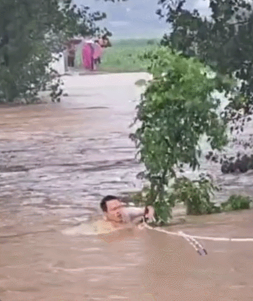 冲入湍急洪水救人
