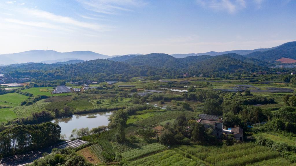 这是7月24日在安徽省铜陵市义安区天门镇新华村拍摄的朱晴雨家周边环境(无人机照片)。新华社记者 傅天 摄