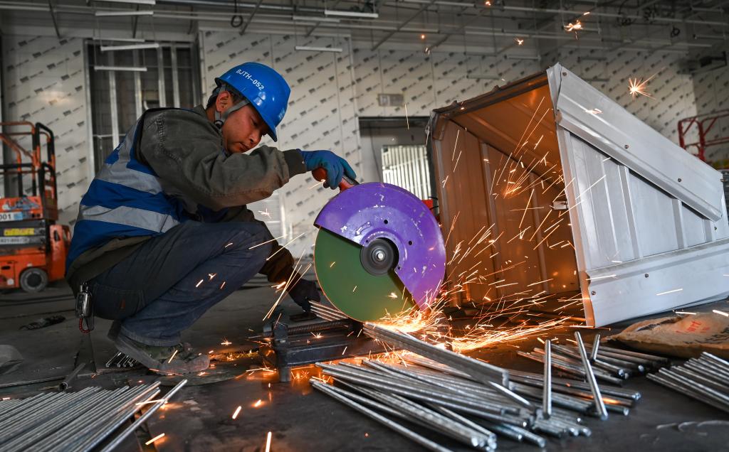 2024年5月1日,工人在位于内蒙古呼和浩特市和林格尔新区的中国农业银行内蒙古数据中心项目工地作业。新华社记者 刘磊 摄