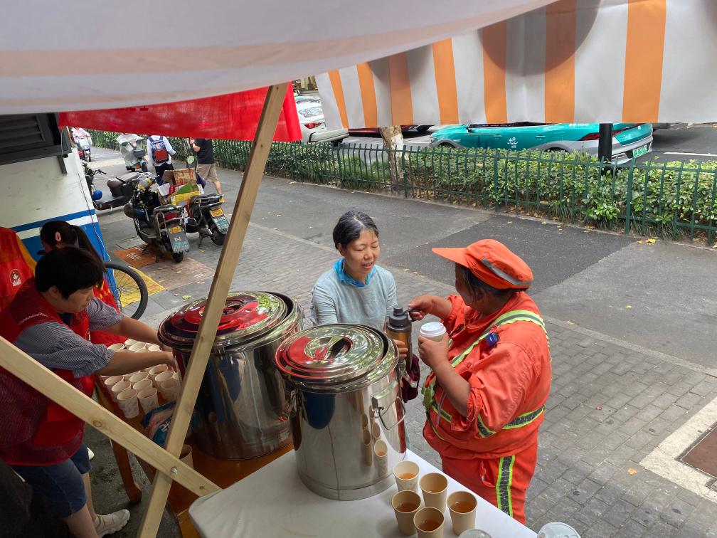 杭州闹市区一角的“生命之光”爱心凉茶摊,成为不少户外劳动者的夏日记忆。(受访者供图)