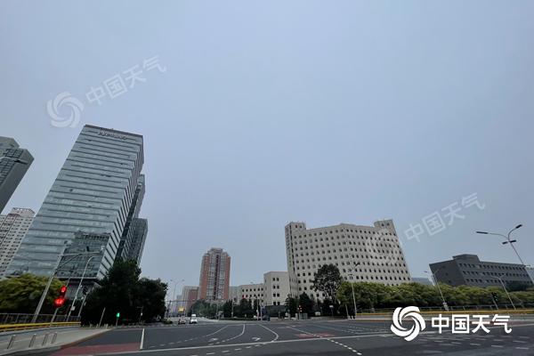 今晨,北京天空阴沉。(图/中国天气网 王晓)